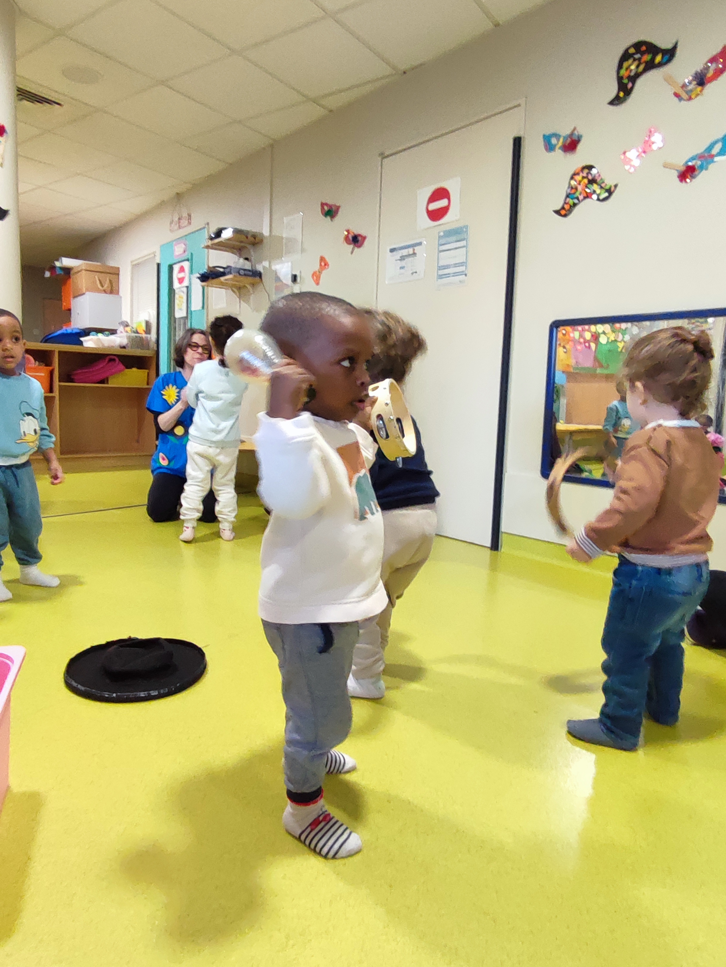 Aujourd'hui, c'est Carnaval. Voici quelques photos. Minnie, a été prise sur le vif, car elle n'a pas voulu garder son costume. Pendant le temps des chansons, nous avons sorti les instruments de musique et les enfants nous ont accompagné quand on a chanté (rythme et tonalité aléatoires mais c'est ce qui fait le charme de l'instant.